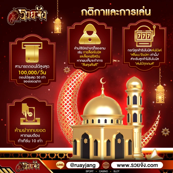 Ruay jang ยังมีโปรโมชั่นที่อัปเดตอยู่เสมอ เช่น โบนัสต้อนรับ โบนัสเครดิตฟรี และคืนเงิน ช่วยเสริมความคุ้มค่าในการเล่น ผู้เล่นสามารถพัฒนาทักษะและกลยุทธ์เพื่อเพิ่มโอกาสในการชนะ รวมถึงเพลิดเพลินไปกับเกมสล็อตที่หลากหลายและบริการลูกค้ามาตรฐานสูง ผ่านคอมพิวเตอร์หรือมือถือมาร่วมสนุกกับ Ruay jang และสัมผัสประสบการณ์การเดิมพันที่ครบวงจรและปลอดภัยได้แล้ววันนี้